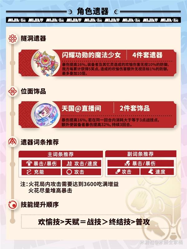 《崩坏星穹铁道》的火花是火属性欢愉角色,那么火花要怎么进行培养呢?下面请看由“米茄全家桶”带来的《崩坏星穹铁道》火花装备选择与配队推荐,一起来看看吧。