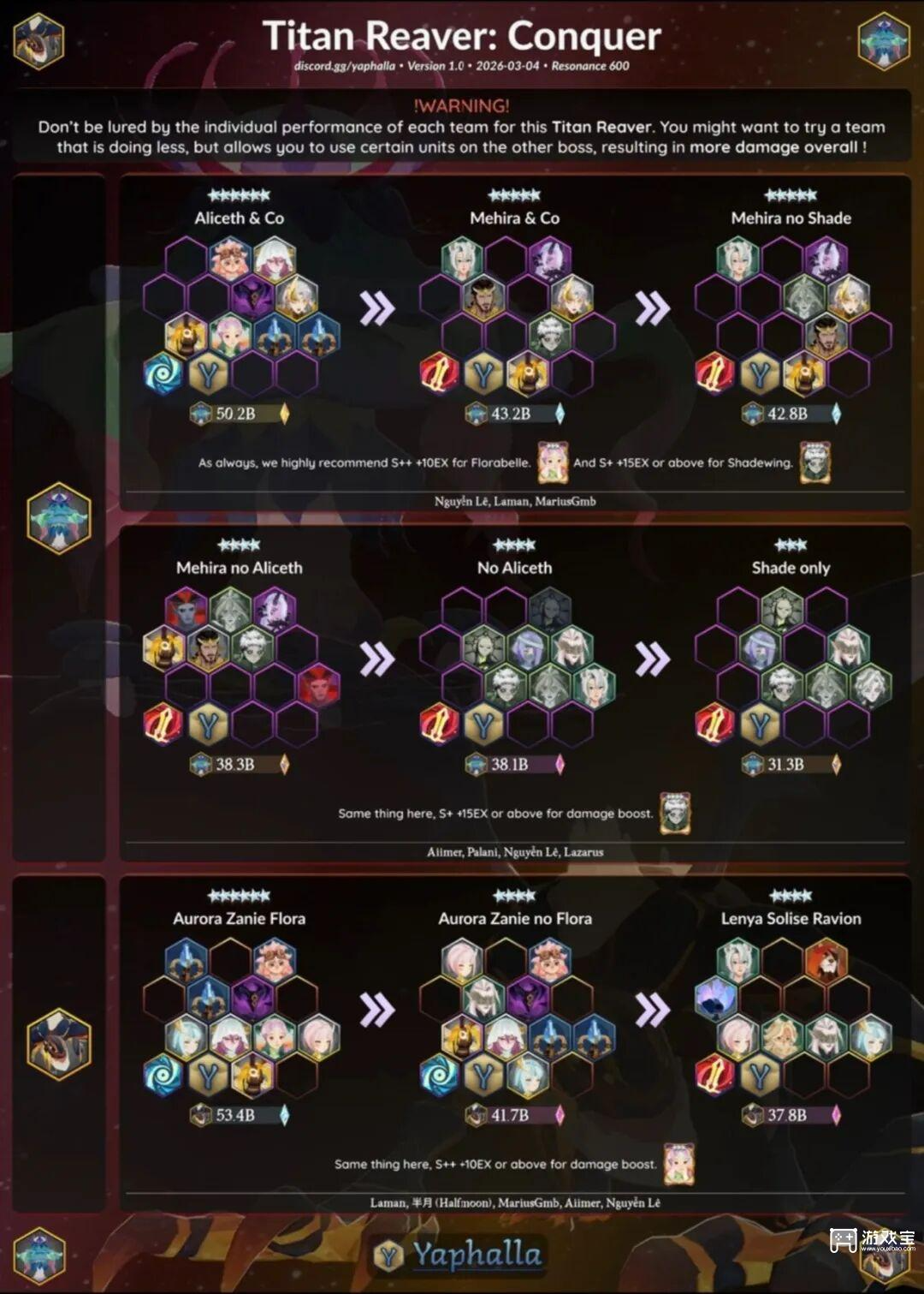 1、先说下迷梦异堕荒畜。今天这个boss不太适合炮魔,所以暂时没试出什么高分阵容,还是按照常规阵容进行推荐。