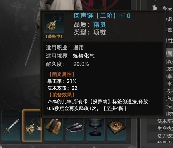 然后装备回声链,有75%的几率在释放一次,这样就一剑打出10道剑气了。