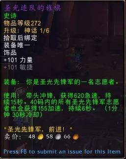 目前最推荐的饰品组合为圣光连队的旌旗+艾林先知的凝视,旌旗为我们补足了关键的爆发期急速,说是构筑核心饰品也不为过;艾林则是有着夸张的覆盖率和叠加效率,数值爆炸。