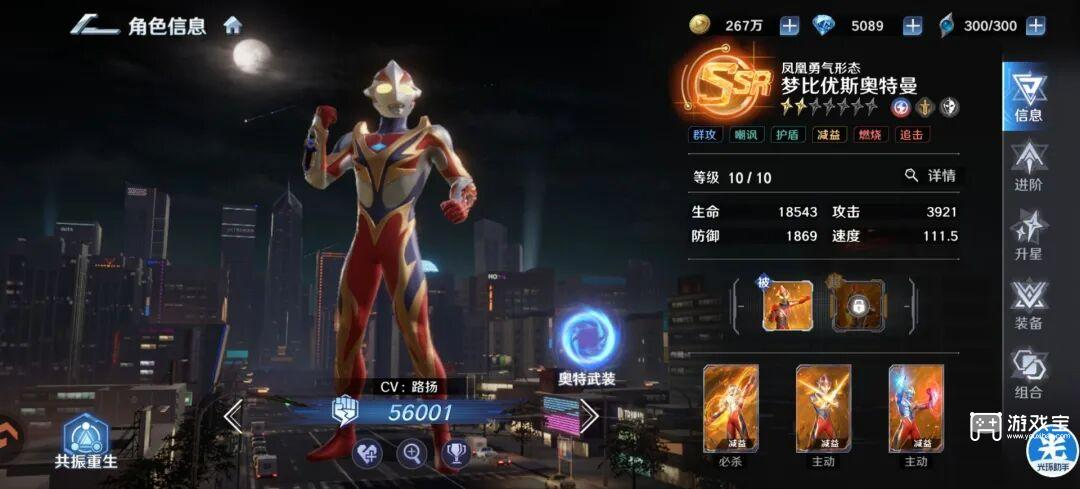 这时候可以去选择培养【终极赛罗】来弥补前期灼烧队伤害不足的问题。