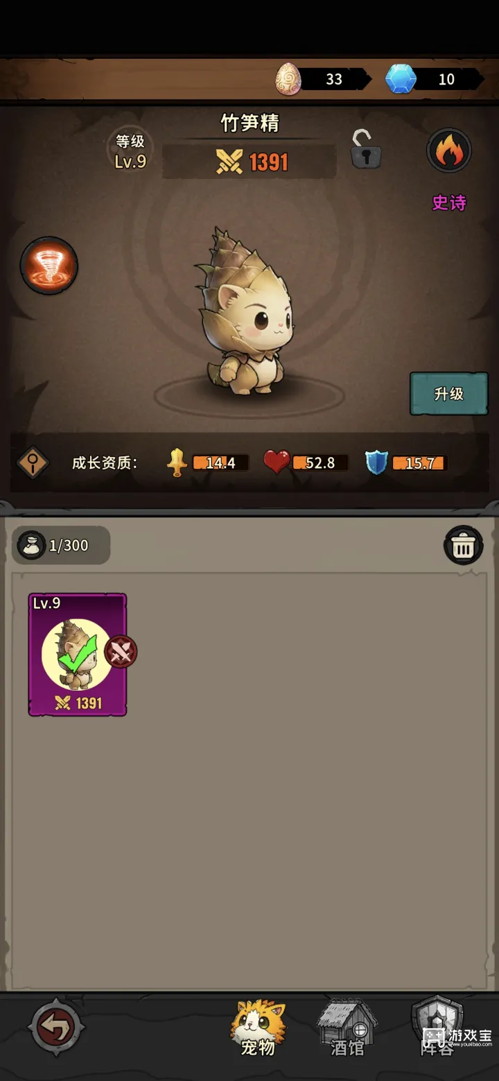 6.最开始的时候需要慢慢刷到10级,然后宠物拿个竹笋就可以爽刷了。