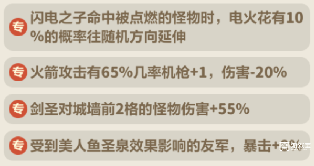 职业增伤、怪物类型增伤、前三波增伤、负面状态增伤等根据不同的阵容和关卡灵活搭配方能伤害最大化。