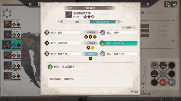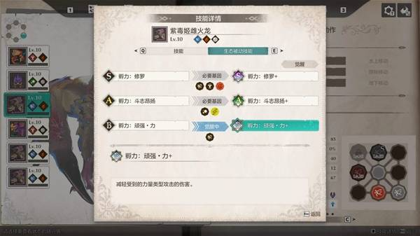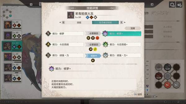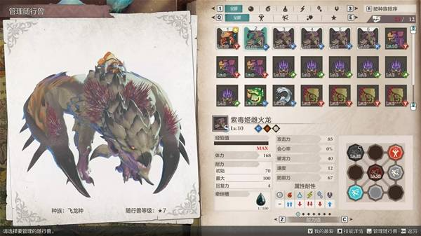 对了,其实本来打算用5棘龙凑“边境的王者之师”队伍速通的,但为什么最后选了紫毒姬呢,因为同样是全体火系必杀,棘龙和紫毒姬的威力、破龙力一模一样,但是没有增伤效果,我看这棘龙也是被完爆了