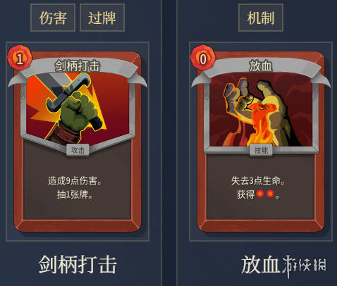 技能牌,失去3点生命。获得能量。核心能量卡。以少量生命为代价获得能量,支撑循环。