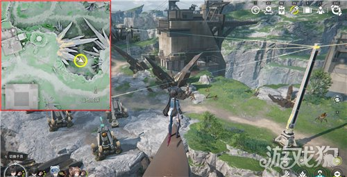 这个在支线任务夺宝奇兵期间就可以完成。如果没有打这个支线的话,参考下图的箭头指示方向走,记得带点水瓶,坐两个用水驱动的电梯,再到大水车里面坐半圈上去就可以了。