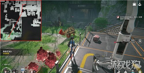 我们来到枢纽区右下角,下图所示的位置,从这里下落攻击一下就拿到了