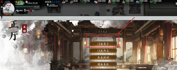 1、首先,需要踩点,快速找到目标。游戏有个很方便的方式,就是每个门派的左侧第一个按钮进去的第一个。可以看到弟子名录。在这里可以快速看到所有人员的信息。一个一个看一下。比如我这个2年的档,哦吼,仅仅只是紫名,居然带了个红武,关注上。
