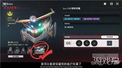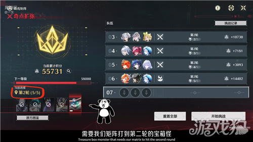 4、进入结算画面后,可以发现宝箱怪血条又回满了,玩家就可以派遣主力队伍进行挑战刷分。(本次宝箱怪将多给玩家1.1倍的积分)