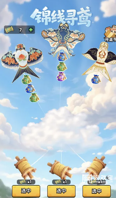 放风筝,可以选择三个风筝中的其中一个,风筝下面挂着福袋,福袋分为绿色,蓝色,紫色,橙色。(橙色奖励最好)