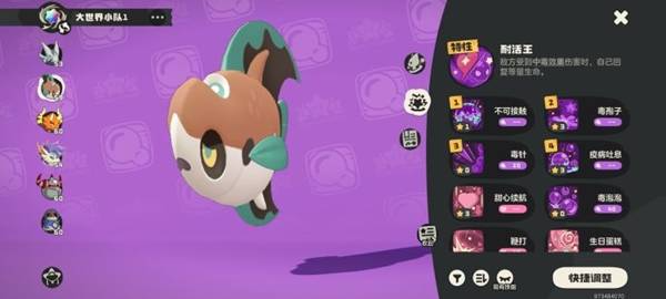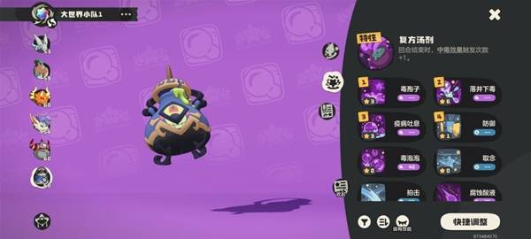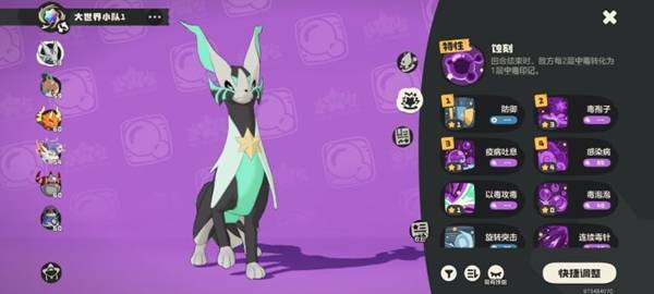 裘卡被动:将对面没两层毒素变成一层毒素印记(印记指即便对方切换精灵,毒素印记还会生效,除非用技能去掉印记),开局用月亮鱼和裘卡给水系叠毒素(合成毒素印记),右边毒鱼不管,直到对面换上另一个月亮鱼(这时应该是12-15层毒素印记),用裘卡换成罗隐一招秒掉毒鱼,等到对面换上和平鸽之后再换回裘卡,接着叠毒,直到对面换上鳗尾兽,注意对面的技能,让月亮鱼用毒针去打鳗尾兽等到印记叠到差不多的时候换上嘟嘟锅,让毒素爆发,疯狂收割,基本上一把过,上场四个精灵全都没有培养,现抓,主要吃的是被动和毒伤,没有任何技巧,机制碾压。