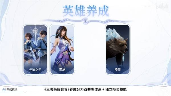 养成分为双共鸣体系+独立唤灵技能,可以理解为双英雄+宠物养成。