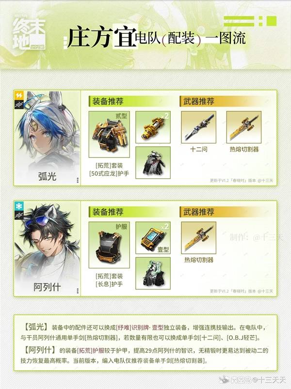 《明日方舟终末地》1.2新角色庄方宜是一名六星电系大C,那么庄方宜要怎么配队呢?下面请看由“十三天天”带来的《明日方舟终末地》庄方宜电队搭配一图流,一起来看看吧。