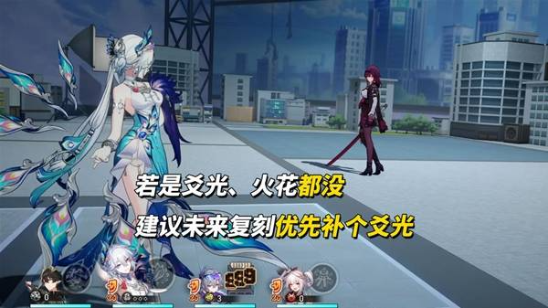①爻光、火花都没。可以考虑抽个00银狼激活背包技“队友被添加控制状态时全队获得1回合防火墙效果期间免疫控制状态”。现阶段先借助环境红利组建“银狼+欢愉主+花火+藿藿”过渡。