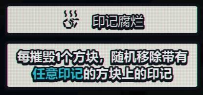 游戏中可以利用4个方块和5个永久强化以及卡牌来搭配出强力的流派,下面给大家分享一个简单的紫色印记流派。