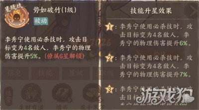 次选技能:【势如破竹】(4人攻击+10%物理增伤)