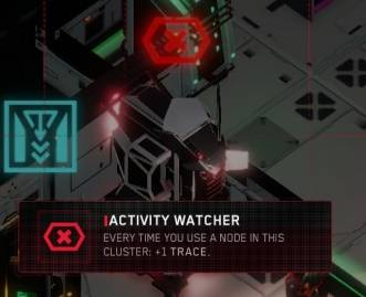 节点的周围的菜单会提醒你它是否受到守护者影响。在这个例子中,由于房间中存在“活动守护者”,所有交互都会生成 1 条额外的追踪信息。