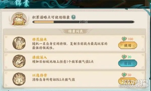 每次完成与敌人的作战或是成功解决所刷出来的事件后,各位还能获得谋略点奖励。玩家可使用谋略点在锦囊界面中激活不同的阵营效果,来为阵营里的全体玩家提供大量的增益,提高他们的作战效率。待跨服军演活动结束后,游戏会统一为所有阵营计算所得的积分,并根据积分确定各阵营的排名和发放排名奖励(以及个人奖励)。个人奖励中,除了必然会获得的军演币外,表现出色的玩家还能拿到军神称号以及更多的宝箱,阵营奖励则是会给予玩家丰厚的元宝奖励。
