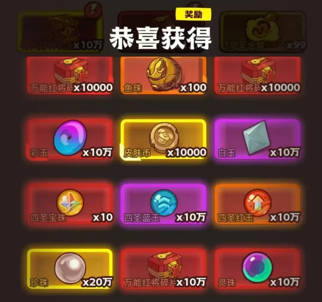 这次活动总共能解锁2颗四圣宝珠碎片,和旧版规则完全不同,记好别白冲: