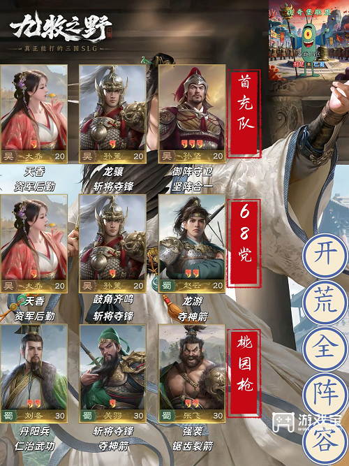 5、高氪开荒坦队 赵云、刘备、程普 霸王反戈、天香、御涛;列阵御敌、仁治武功、青州军。