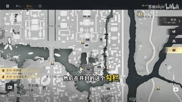 先到达开封城,在开封城如下图勾栏瓦肆的河边上: