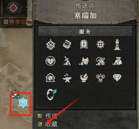 这时就会把【塞瑞加】传送点添加到传送点收藏,同时也可以在右下城镇传送门图标上看到所收藏的传送点名字。之后想回时直接点快捷键就会自动回到所收藏的地方。