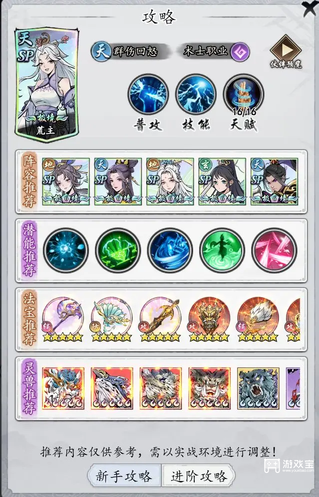 推荐阵容:青元子(肉盾免伤)+ 荒主(群伤回怒)+ 姬紫月(治疗增益)+ 云曦(群疗加攻)+ 方清雪(窃怒免伤)+ 叶天帝(叠怒高伤)