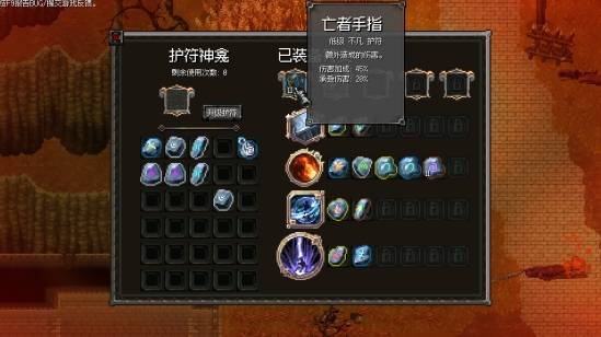 游戏中会经常掉落各种稀有度的符文,玩家可以装备在武器、法术、守护、终结技上面,从而提升该技能的效果。