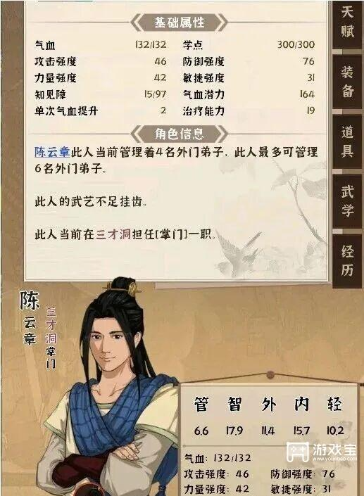 调整属性点,智慧高于其他,内劲次之,其余在8~12即可,管理5~8也别太低