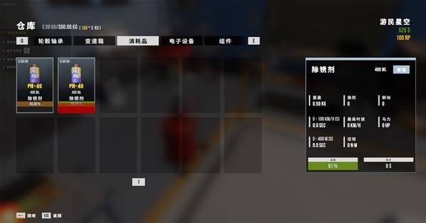 所有物品会有对应重量,仓库拥有重量上限,所以没法屯太多货,仓库重量上限为RP*3。