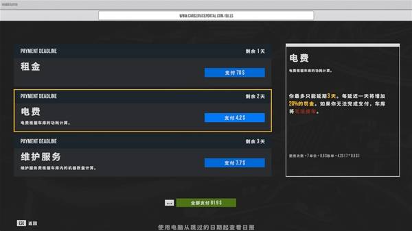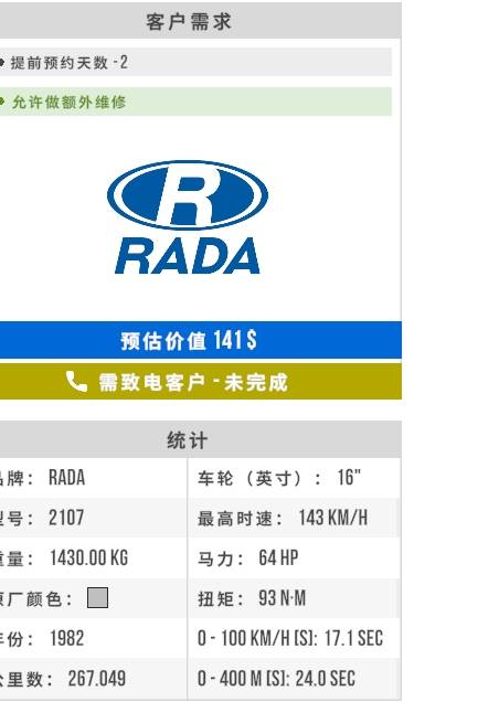 这里可以显示客户的要求和车辆数据,允许做额外维修代表玩家可以自行发现并修理待处理订单以外的问题从而获得额外金钱,无需代表不用。