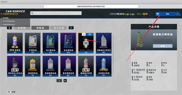 在消耗品界面购买转向助力油