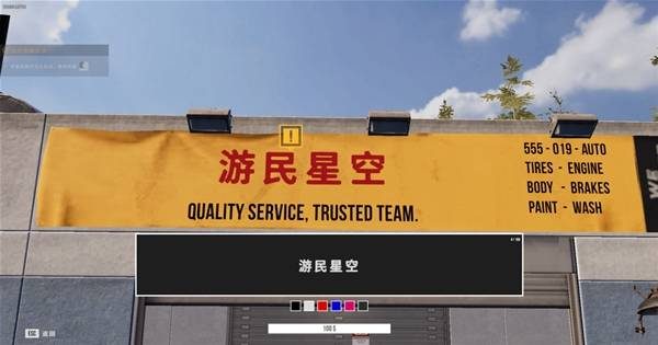 抬头点击自己的招牌,输入一个自己喜欢的名字和颜色,然后点击下方的100$即可成功修改。