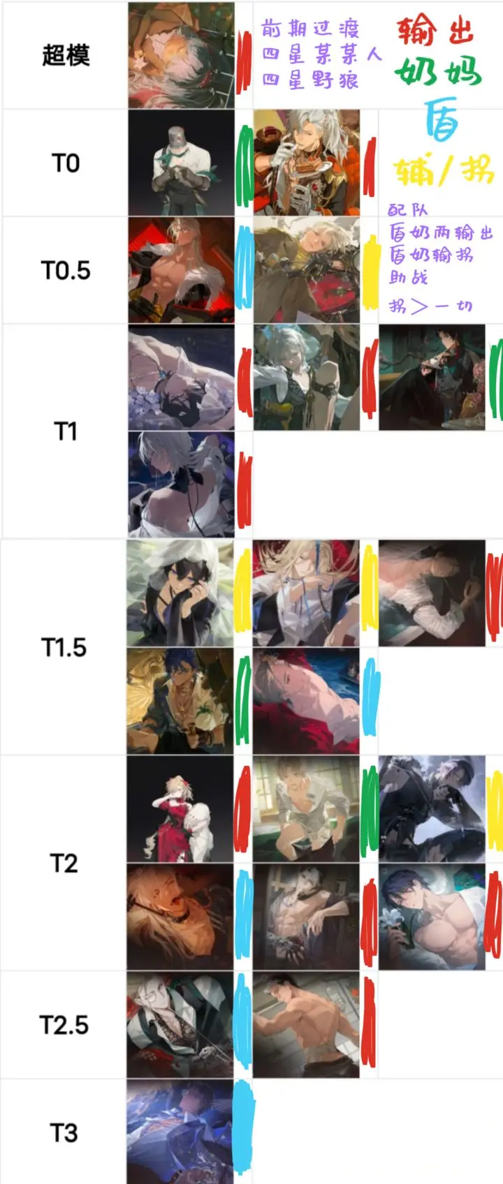 1、核心角色:6星提线人、5星白镰刀、6星将军