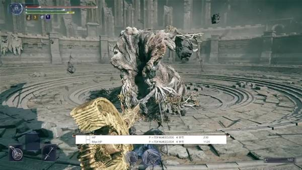 测试方法,Boss竞技场mod用追踪者被黄金树化身的双手竖劈打中,然后进行翻滚攻击回血。