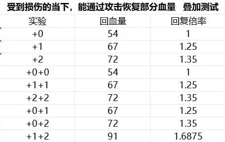 然后分别拿带受到损伤的当下,能通过攻击恢复部分血量+0/+1/+2进行测试,