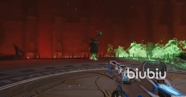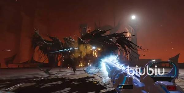 在残血阶段,boss会变成红色的虚影,对场上进行大刀的斩击,这个斩击的伤害非常高,建议玩家们立即跳起来就能全部躲避,躲避以后,boss就会变成原本的形态,该形态是最佳的输出时间,武器直接瞄准boss的头部就能疯狂扫射,基本上就能瞬间带走boss。
