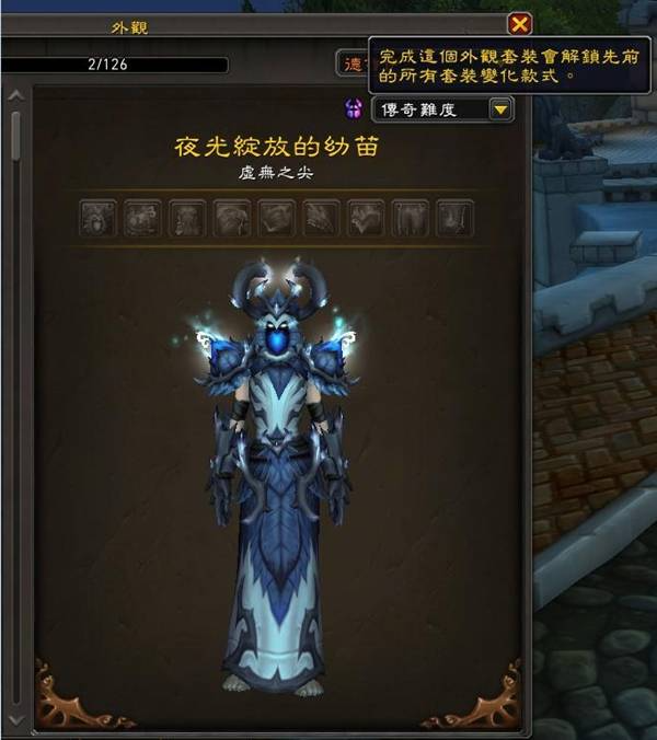 在这里可以预览所有的套装,值得提的是你还没完全收集完的套装也会显示在这里,移到上面时会显示未完成。并且提供让你塑形未完成的套装。算是新功能,因为目前的塑形系统只能方便让你塑形你完全收集完的,如果你只缺一个部位也没办法让你塑形有的部位。这边的新功能可以。