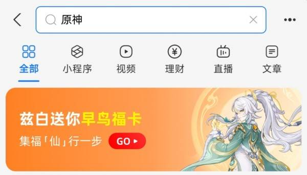参与方法:在支付宝APP搜索“原神”即可参与早鸟场活动