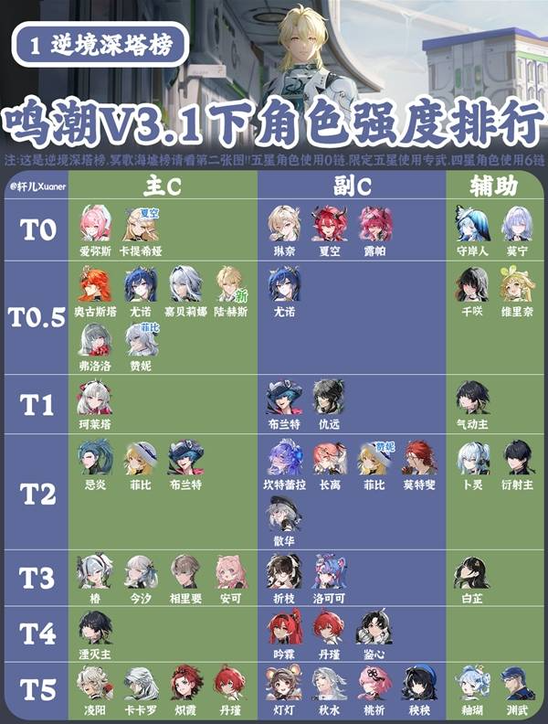 《鸣潮》3.1版本下半增加了新角色陆·赫斯,那么下半期间的各角色强度如何呢?下面请看由“轩儿Xuaner”带来的《鸣潮》3.1下半全角色强度排行榜,一起来看看吧。