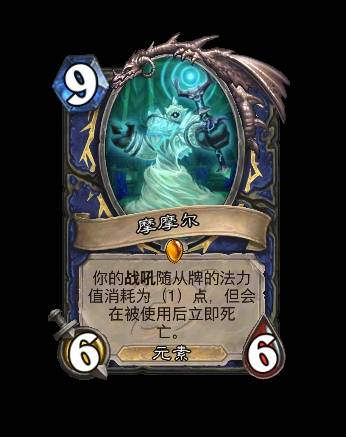 改动后:[法力值消耗9] 你的战吼随从牌的法力值消耗为(1)点,但会在被使用后立即死亡。