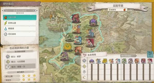 (野外孵育界面左下则为该地图可获得的生态被动技能及能力提升)