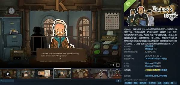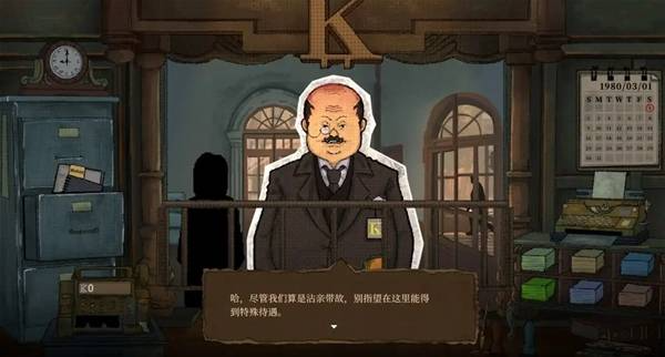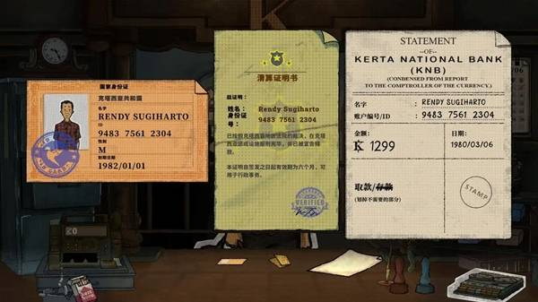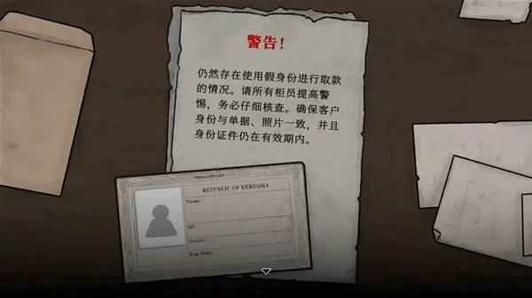 游戏主要玩法便是:玩家每天坐在柜台前,面对形形色色来取款/存档的客户,必须快速核对他们的身份、金额与日期,任何失误都会直接影响单日工资的发放。