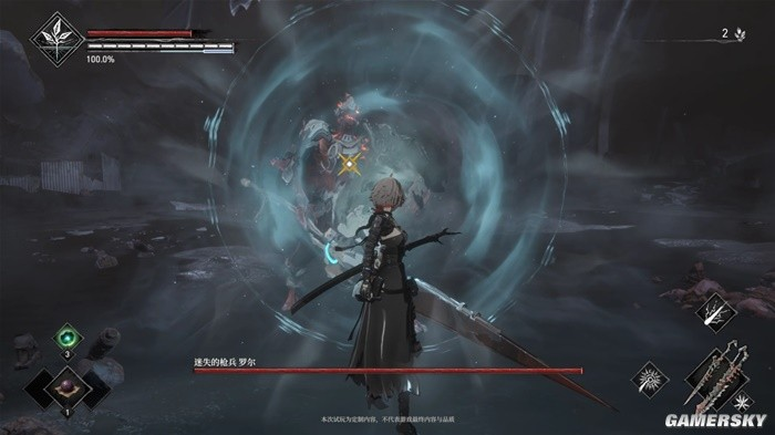 尽管试玩的流程短暂,但游戏还是展示了较为丰富的敌人设计。有动作“僵硬”,难以判断出手前摇的机器人,疯狂乱抓的成堆“狗薪王”,还有一些行动敏捷的、看似与主角外形相似的精英人型怪。试玩中共有两场BOSS战,其中第一场BOSS很快变成了地图中的精英敌人,而末尾的真BOSS“迷失的枪兵罗尔”确实有着足够的挑战性,其第一阶段与第二阶段完全不同的战斗和动作风格,让还没太适应本作战斗节奏的我狠狠吃了苦头。