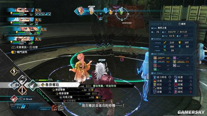 只是在轨迹这种超级大长篇游戏面前,我很难有心力连着这么多部去研究战斗和搭配,更倾向于将其当做重剧情的“番剧”来看。所以在我选择的普通难度下,大部分战斗都如同砍瓜切菜。只需将敌人打入晕眩后切入回合制战斗,开启boost与队友EX连携击中晕眩的敌人,基本可以一套带走大部分敌人。