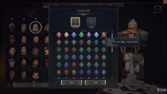 游戏开始前玩家还可以选择携带几种“纪念物”,[纪念物]是《文明7》新增加的局外养成内容,玩家通过在局内达成指定成就任务获取经验值,进而提升玩家的等级以及对应的领袖等级,随着等级的提升,各种纪念物也会逐一解锁。纪念物大体可以分为一般纪念物和独特纪念物两种,提升玩家等级可以解锁一般纪念物,这种纪念物数量较多但提供的加成效果较为简单;独特纪念物会在领袖等级提升后逐级解锁,与一般纪念物相比加成效果更加可观。