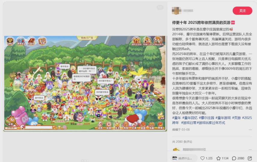 就比如小某书上就有一个帖子拿了上万赞,内容大概是2025年跨年的时候,有大量的玩家聚集在页游的粒粒广场庆祝,我看到的时候,真的有一瞬间时间倒退了15年的感觉。