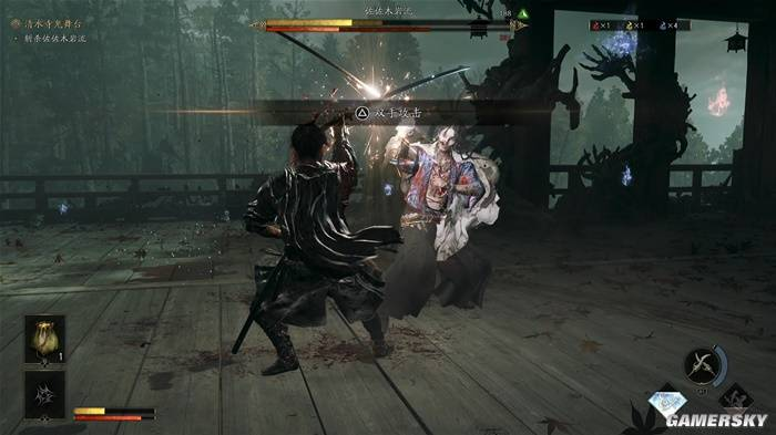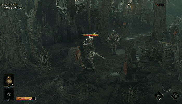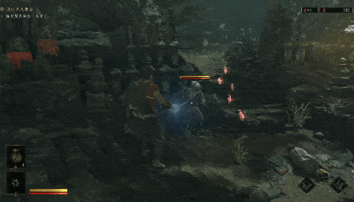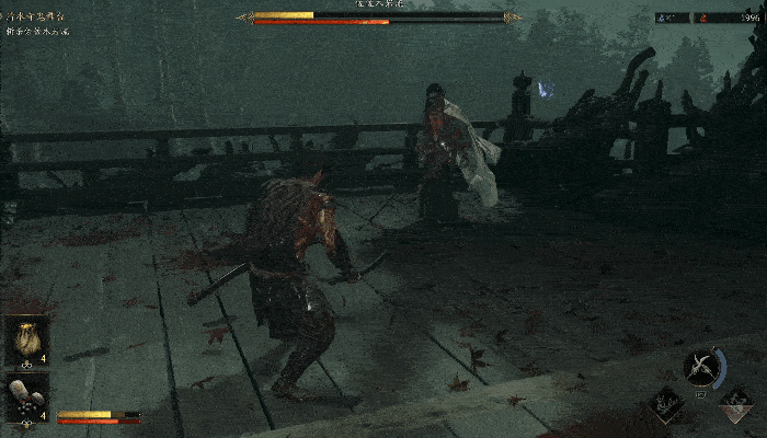 “力动”可以理解为敌人的架势条,当力动槽清空后,玩家即可对其发动必杀处决(崩一闪)。因此,在尚未完全掌握“一闪”机制时,玩家完全可以依靠“化劲”来偏转攻击,通过削减敌人的架势条触发“崩一闪”处决敌人。此时《鬼武者:剑之道》的体验与《只狼》是十分相似的。