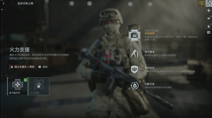 每个兵种两条技能树,基本是将《战地4》和《战地5》的设定做了结合