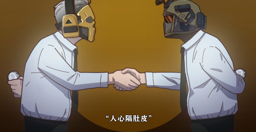 但也不知道是从什么时候开始,选取深蓝变成了“和平声明”——因为开盾期间无法开枪,打破了玩家间的黑暗森林法则,使玩家间的友善接触成为可能,逐渐地,监狱内的深蓝队伍之间便形成了和平互搜的共识。